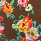 Brown-Green-Multi Ikat Floral Printed Challis Woven Fabric