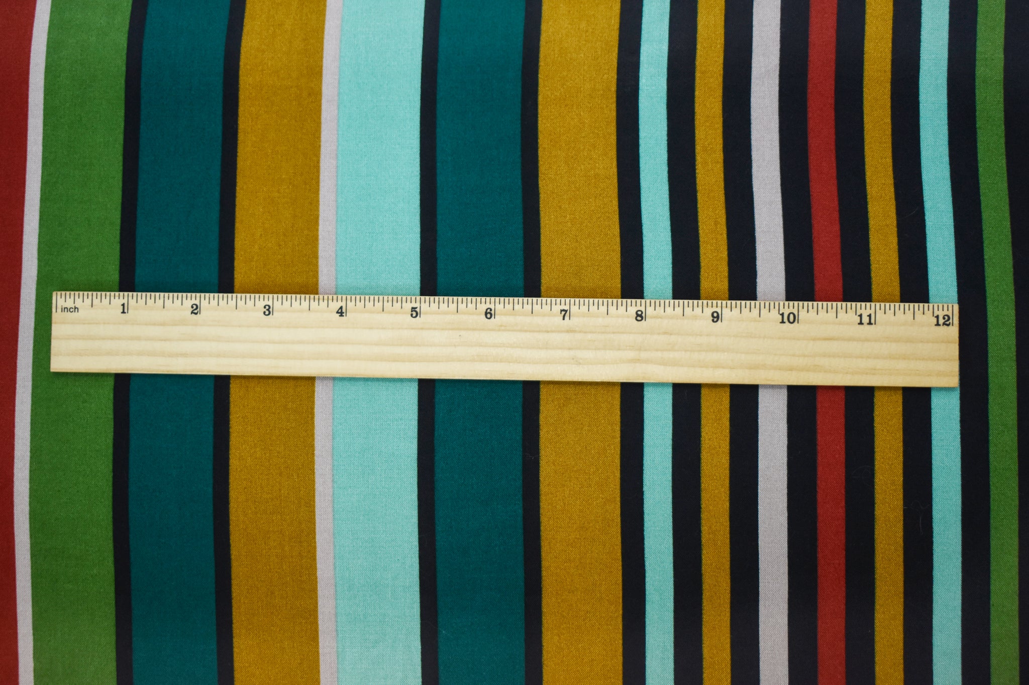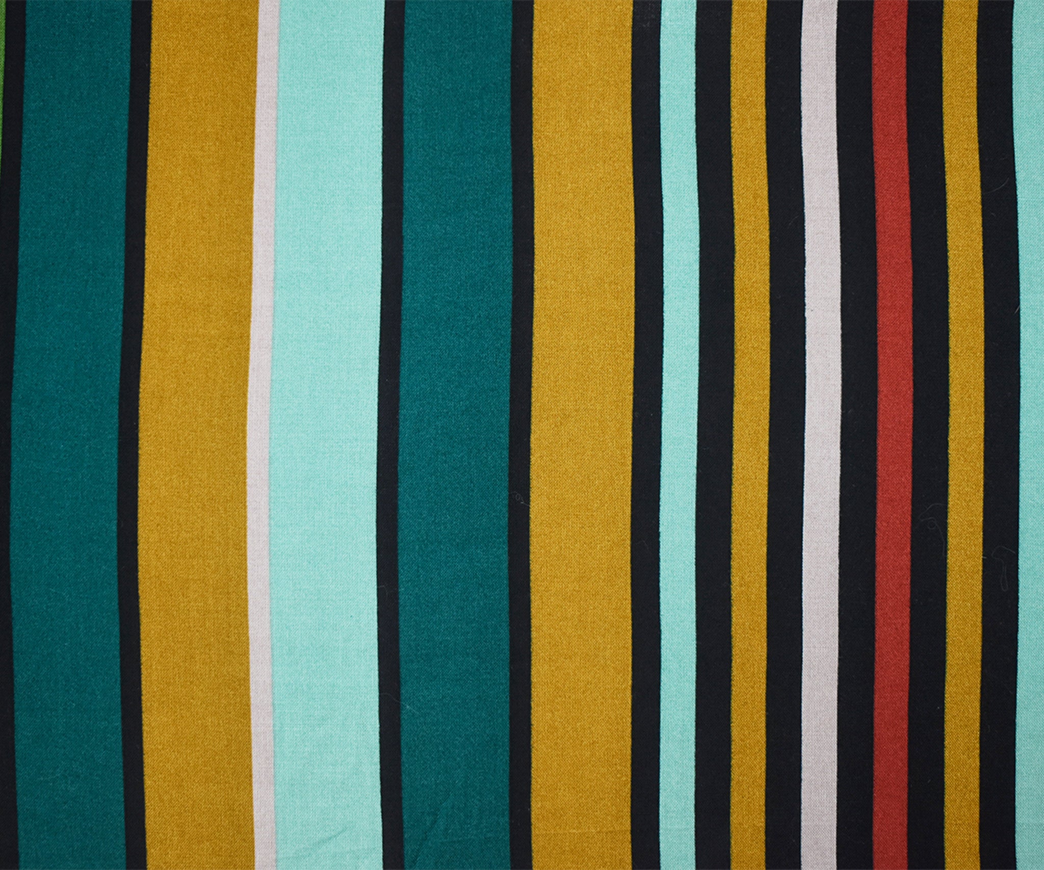 Brown-Green-Multi Rayon Stripe Printed Challis Woven Fabric