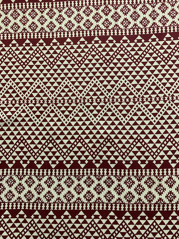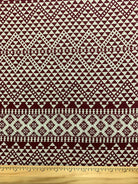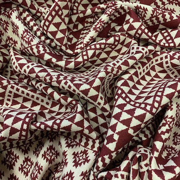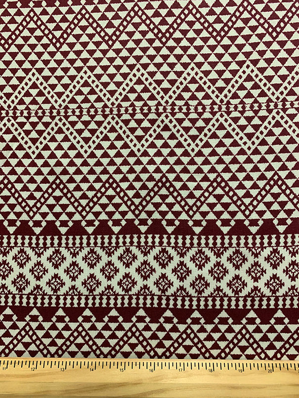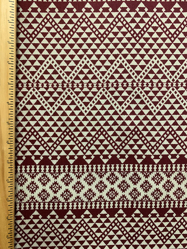 -Burgundy and White Multi Print Novelty Horizontal Stripe Rayon Challis Fabric