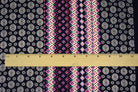 Dark Navy-Pink-Multi Medallion Multi Stripe Printed Challis Woven Fabric
