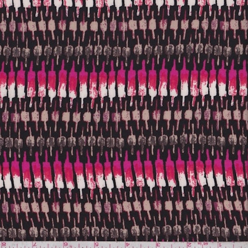 Hot Pink/Tan/Black Deco Rayon Challis Fabric