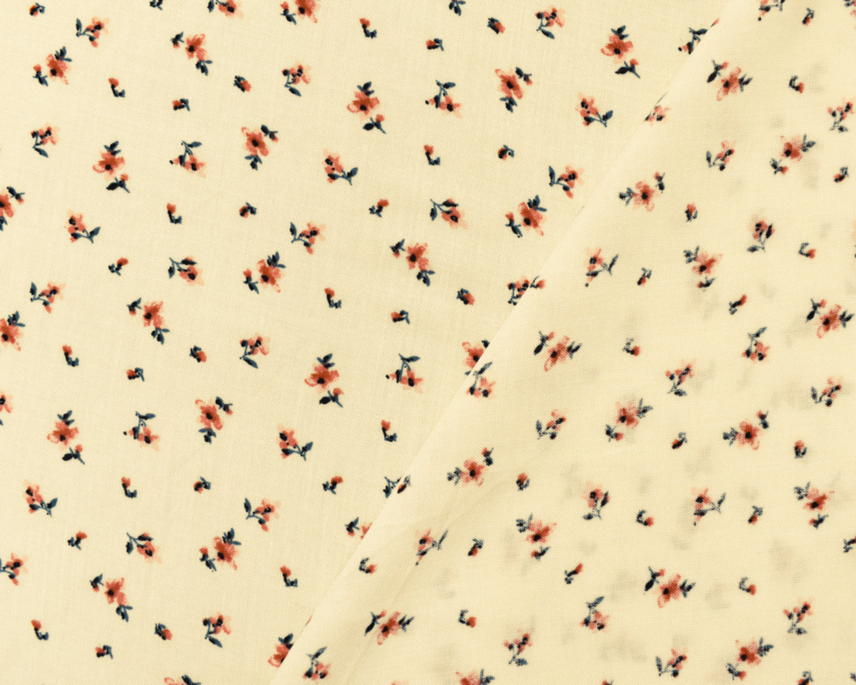 -100% Rayon challis woven fabric printed with a ditsy floral pattern