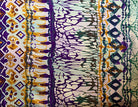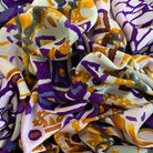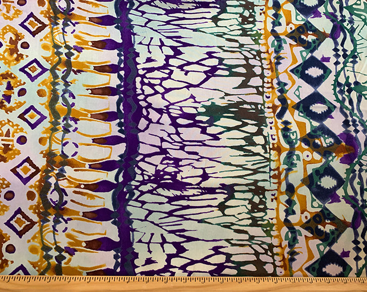 -Purple,Gold,Orange,Rust,Blue,Off White Multi Print Rayon Challis Fabric (Pattern repeats on each side 29" up to meet in center of fabric folded in half of width)