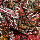 Red and Black Multi Animal Patchwork Print Rayon Challis Fabric