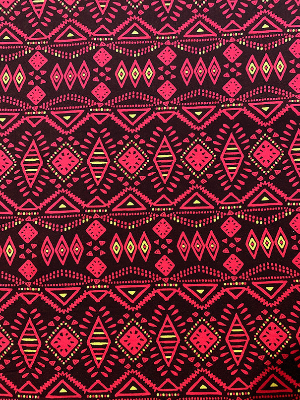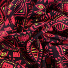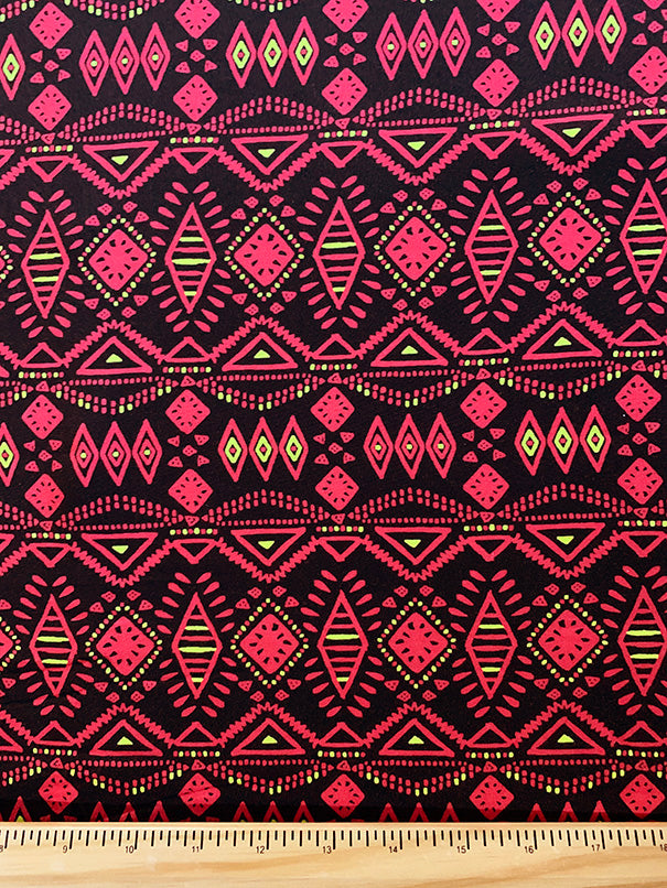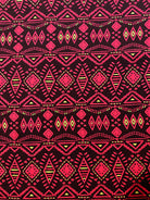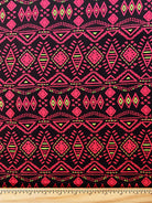 -Red, Yellow, & Black Aztec Stripe Print Rayon Challis Fabric