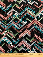 Rose and Teal Multi Broken Chevron Print Rayon Challis Fabric