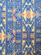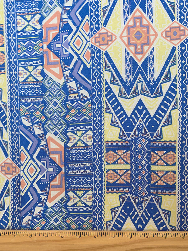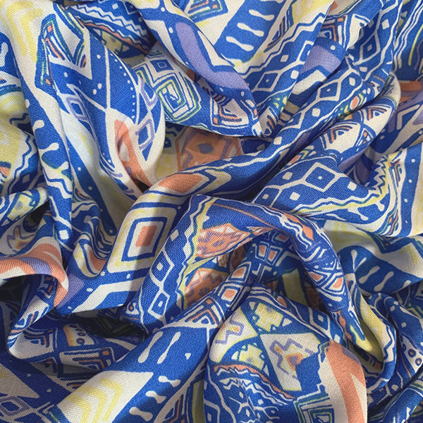 -Sky Blue, White, Yellow, Orange, & Lavender Multi Print Rayon Challis Fabric