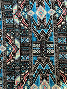 -Turquoise, Mint Green, White, Black, & Pink Print Rayon Challis Fabric