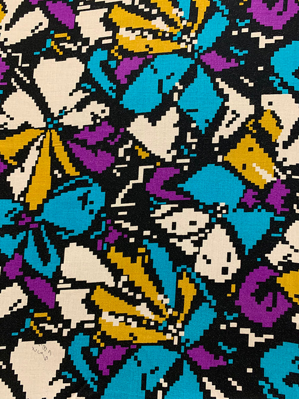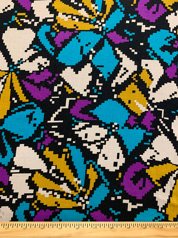 -Turquoise, Purple, Light Gray, & Black Digital Floral Print Rayon Challis Fabric