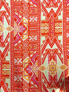 -Orange, White, Gold, Pink, Green Print Rayon Challis Fabric