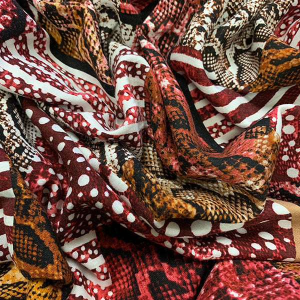 Rayon Challis is a lightweight, soft, smooth, and breathable fabric known for its elegant drape. Made predominantly from rayon fibers, which are derived from wood pulp or cotton, rayon challis is a popular choice for clothing, particularly flowy garments like dresses, skirts, and blouses, due to its breathability and comfortable feel, especially in warm weather. Shop our huge selection — stocked with popular on-trend prints and gorgeous color solids.