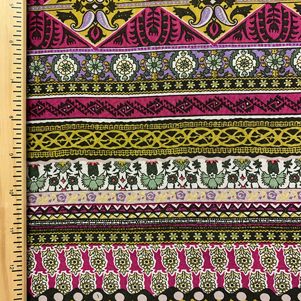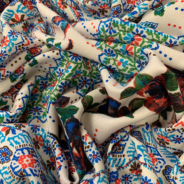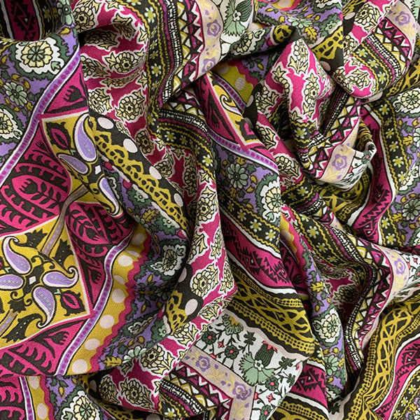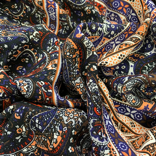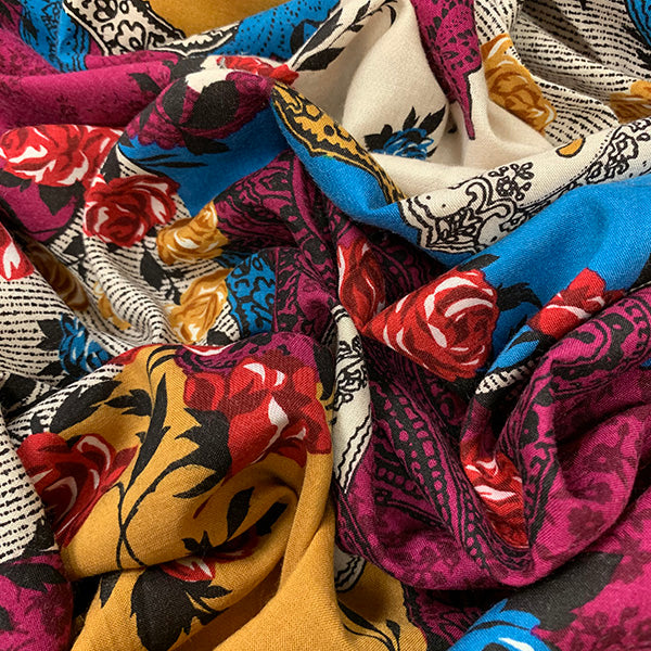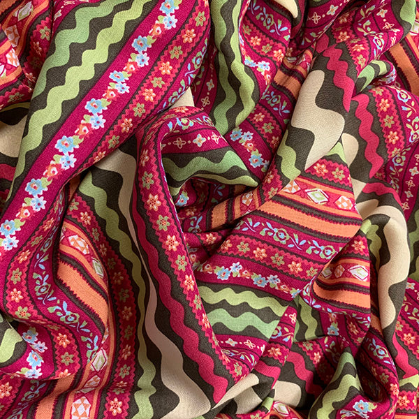 Rayon Challis is a lightweight, soft, smooth, and breathable fabric known for its elegant drape. Made predominantly from rayon fibers, which are derived from wood pulp or cotton, rayon challis is a popular choice for clothing, particularly flowy garments like dresses, skirts, and blouses, due to its breathability and comfortable feel, especially in warm weather. Shop our huge selection — stocked with popular on-trend prints and gorgeous color solids.