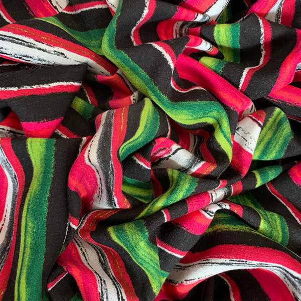 Rayon Challis is a lightweight, soft, smooth, and breathable fabric known for its elegant drape. Made predominantly from rayon fibers, which are derived from wood pulp or cotton, rayon challis is a popular choice for clothing, particularly flowy garments like dresses, skirts, and blouses, due to its breathability and comfortable feel, especially in warm weather. Shop our huge selection — stocked with popular on-trend prints and gorgeous color solids.