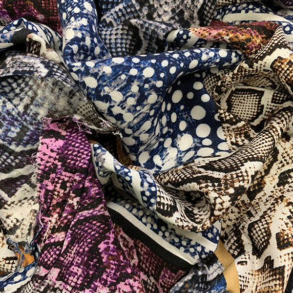 Rayon Challis is a lightweight, soft, smooth, and breathable fabric known for its elegant drape. Made predominantly from rayon fibers, which are derived from wood pulp or cotton, rayon challis is a popular choice for clothing, particularly flowy garments like dresses, skirts, and blouses, due to its breathability and comfortable feel, especially in warm weather. Shop our huge selection — stocked with popular on-trend prints and gorgeous color solids.