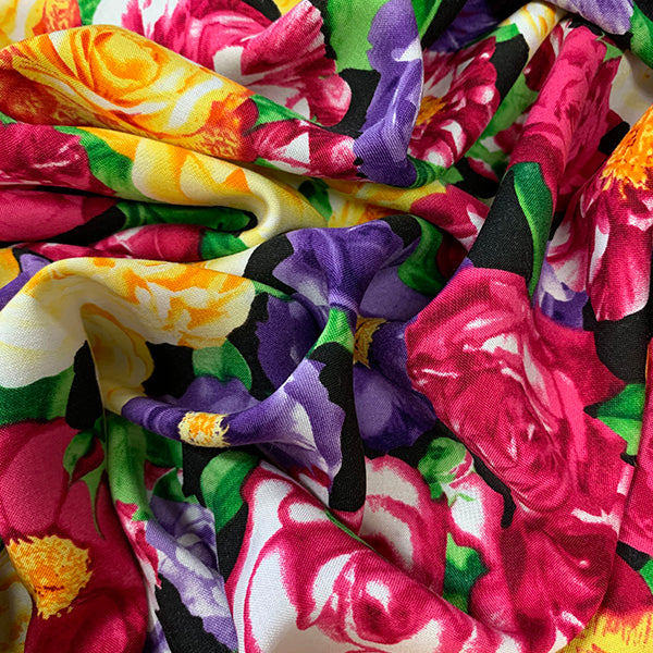 Rayon Challis is a lightweight, soft, smooth, and breathable fabric known for its elegant drape. Made predominantly from rayon fibers, which are derived from wood pulp or cotton, rayon challis is a popular choice for clothing, particularly flowy garments like dresses, skirts, and blouses, due to its breathability and comfortable feel, especially in warm weather. Shop our huge selection — stocked with popular on-trend prints and gorgeous color solids.