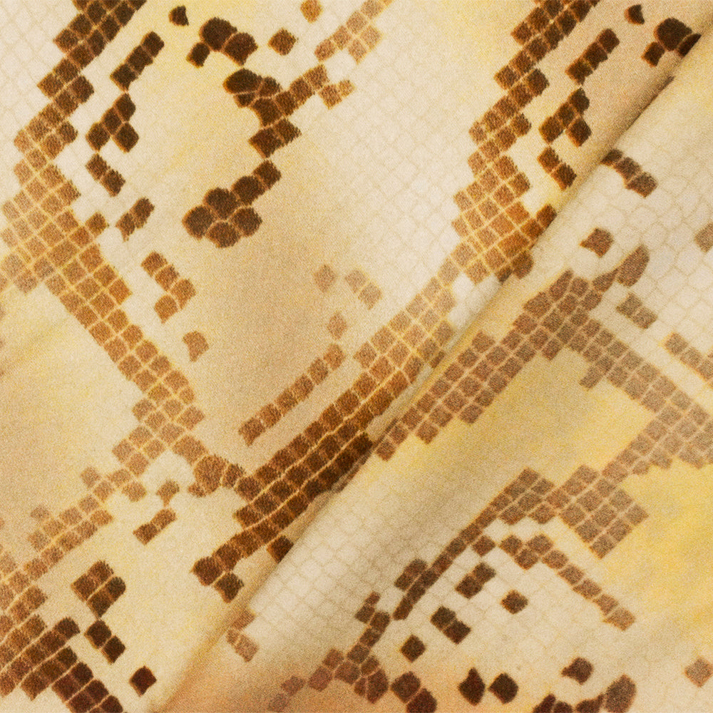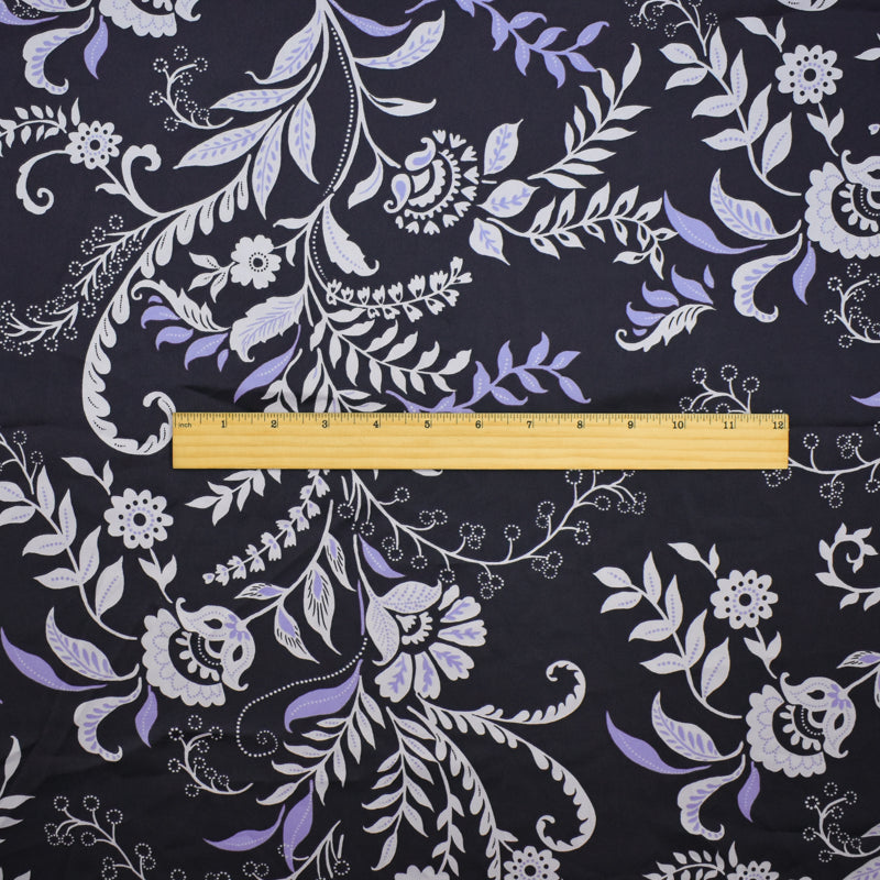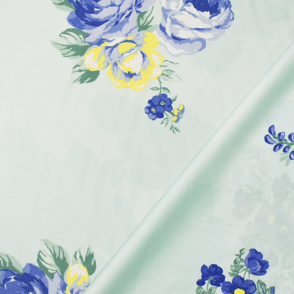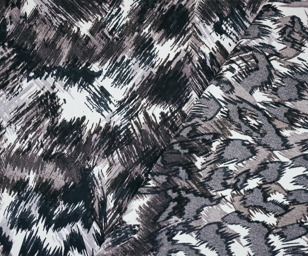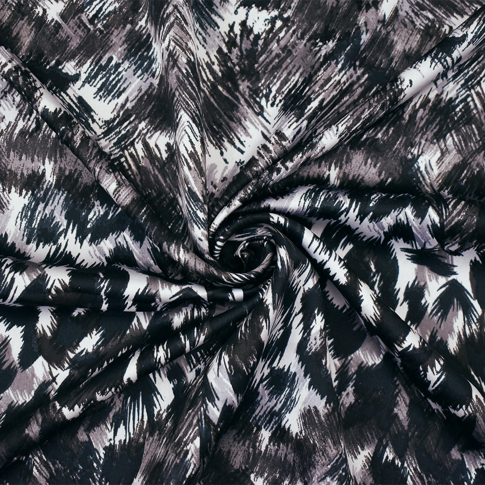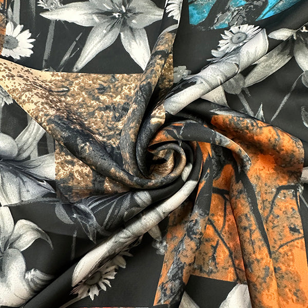 Charmeuse fabric can be solid or printed designs, and is a lightweight fabric woven with a satin weave that gives the front of the fabric a smooth finish — lustrous — with a matte backside. Most commonly used in evening wear as well as blouses, dresses, linings, and lingerie. Available in many gorgeous colors and prints!