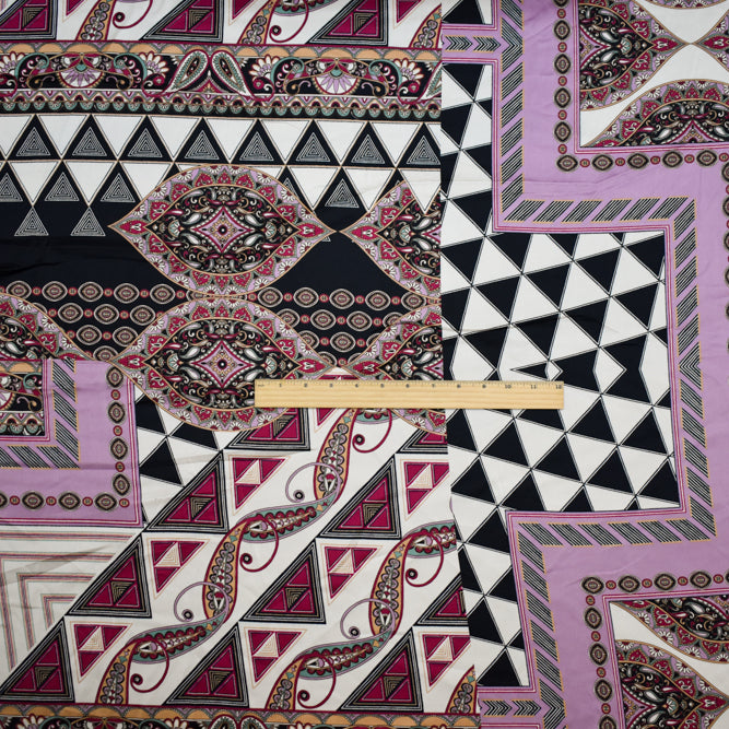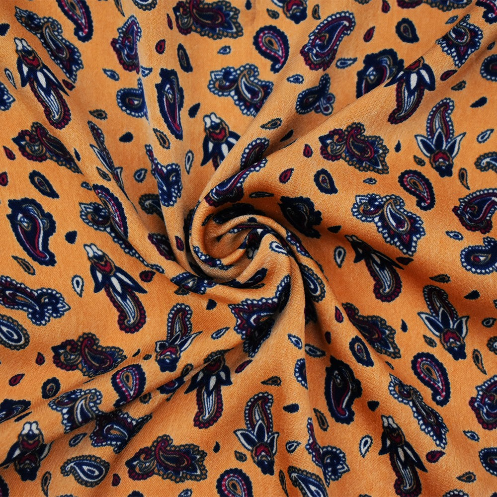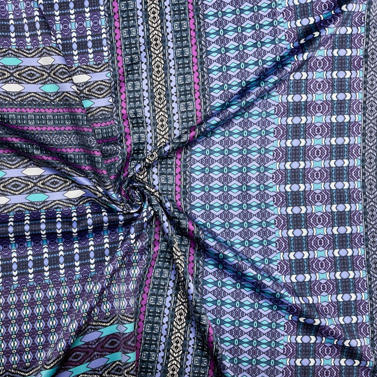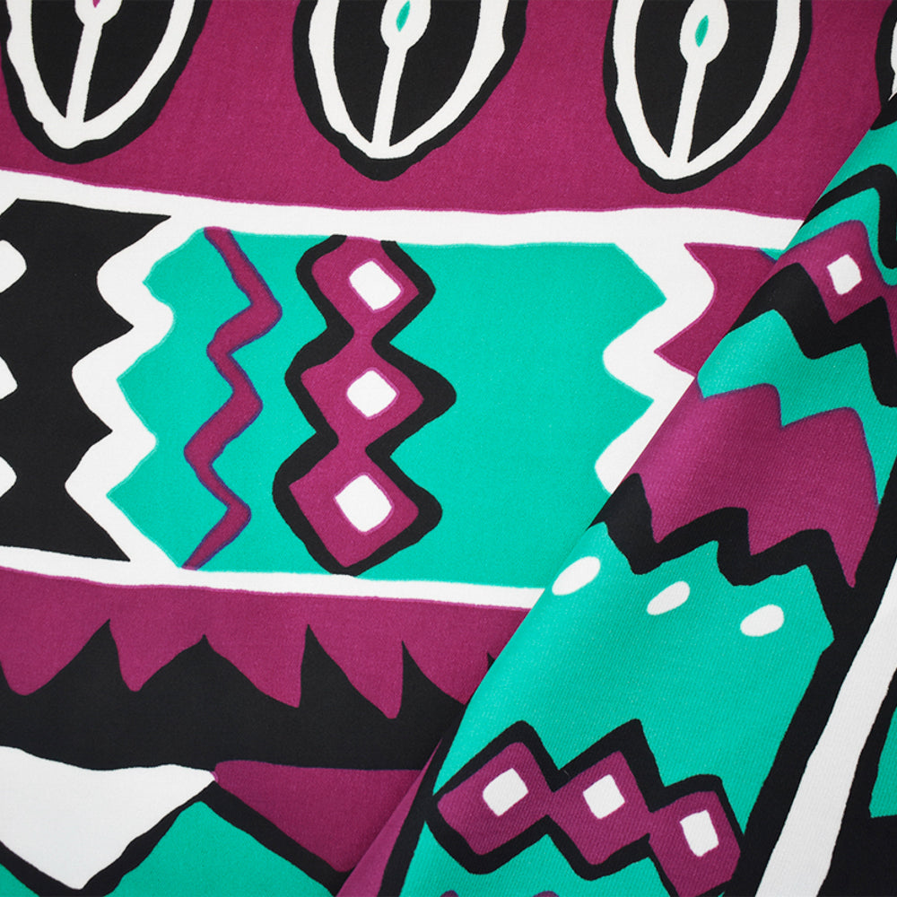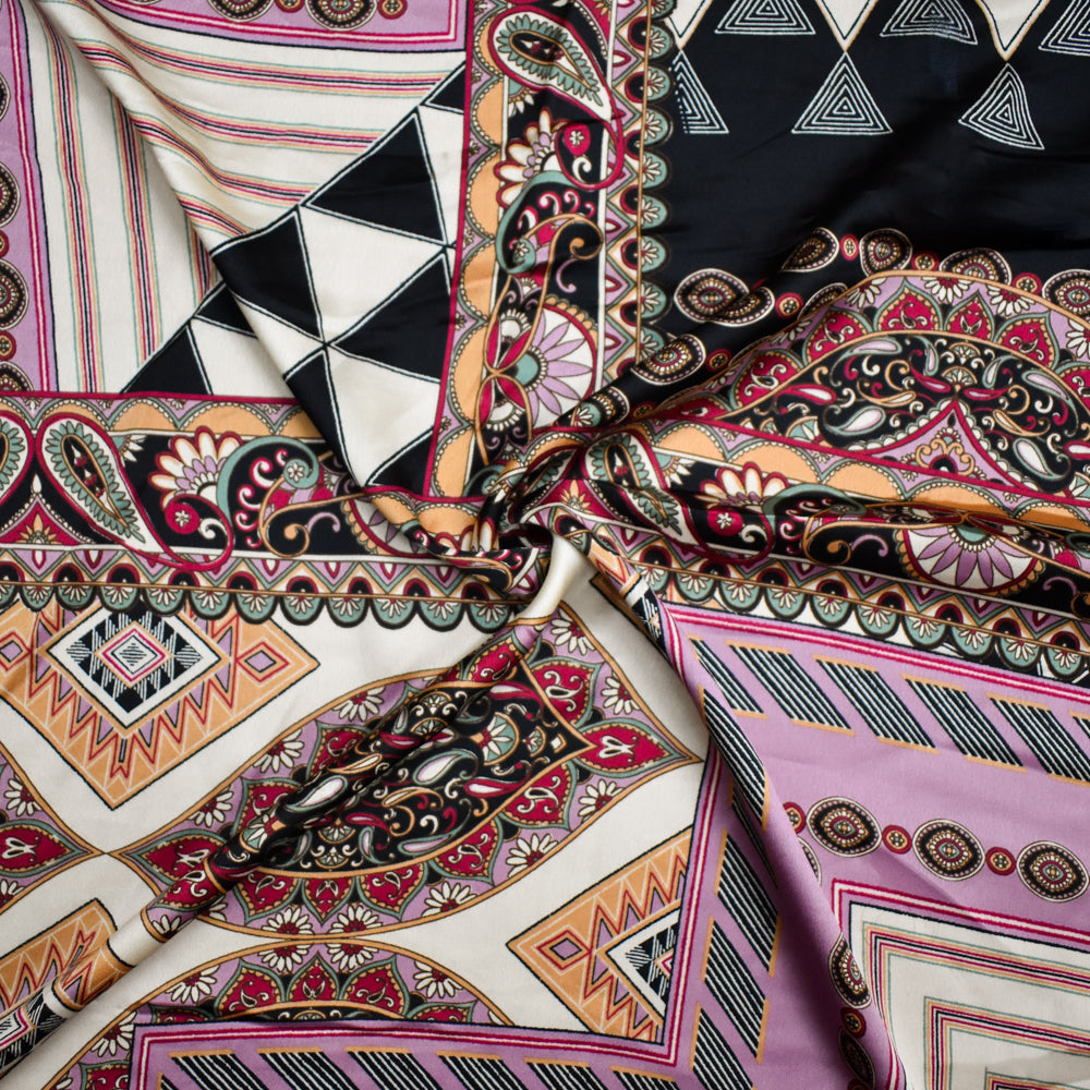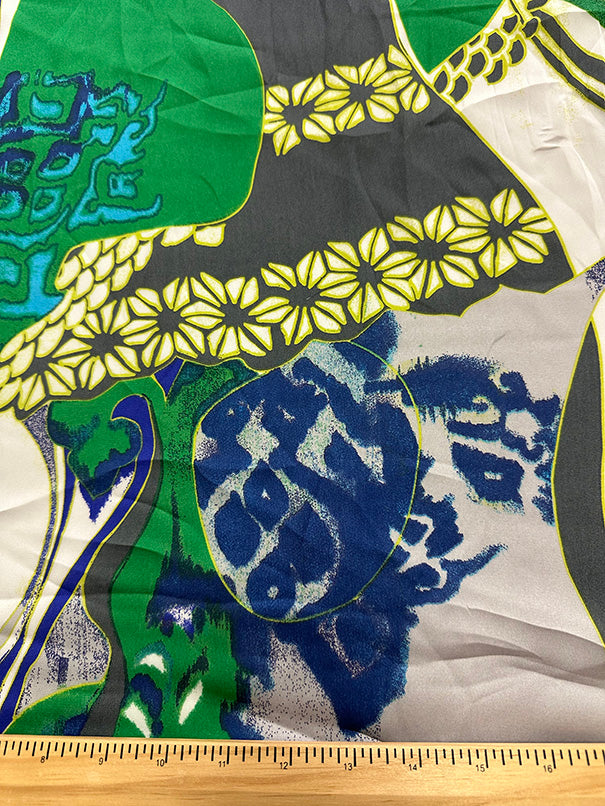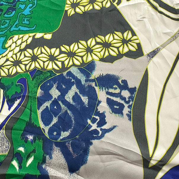 Charmeuse fabric can be solid or printed designs, and is a lightweight fabric woven with a satin weave that gives the front of the fabric a smooth finish — lustrous — with a matte backside. Most commonly used in evening wear as well as blouses, dresses, linings, and lingerie. Available in many gorgeous colors and prints!