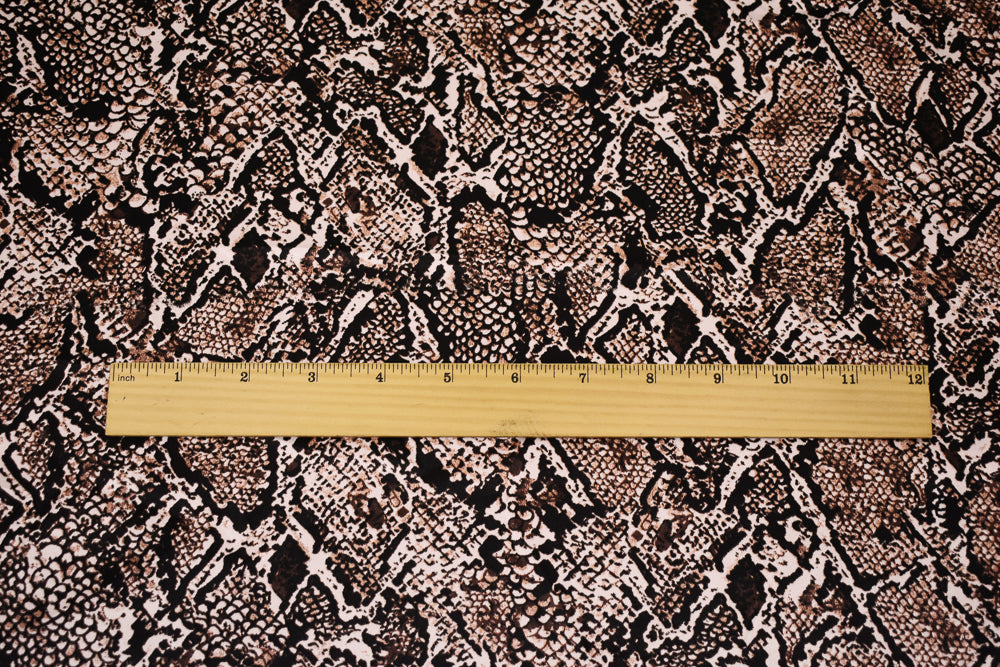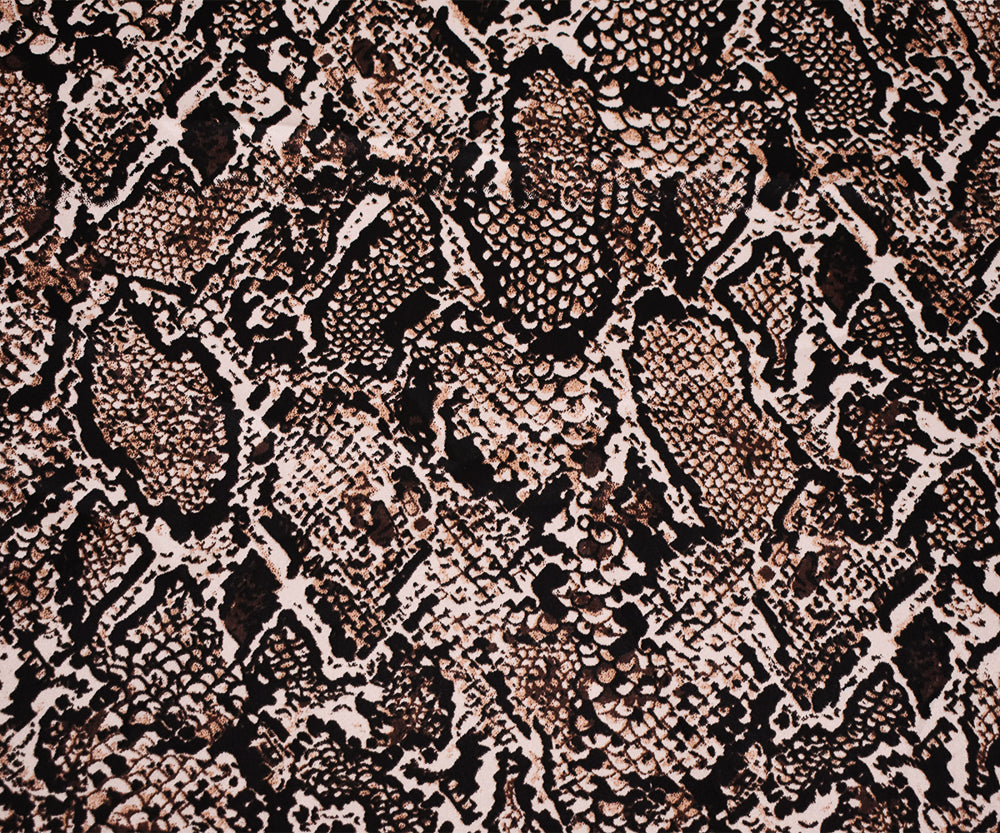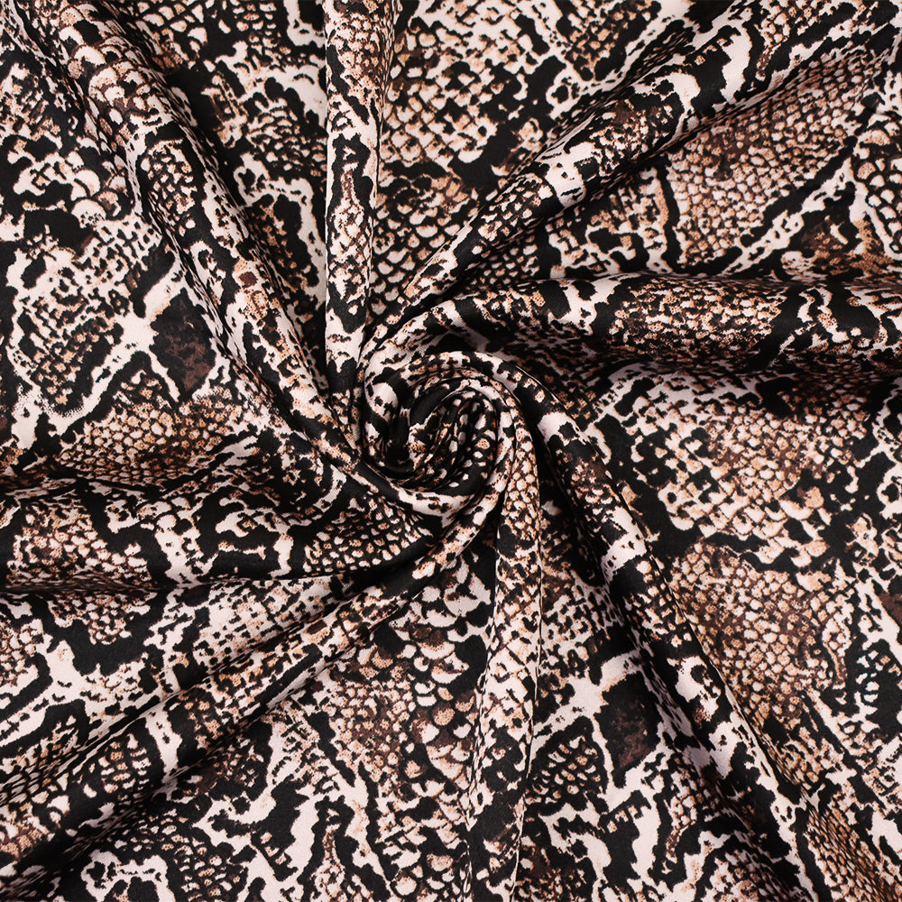 Brown-Beige-Multi Polyester Reptile Skin Printed Charmeuse Woven Fabric