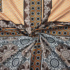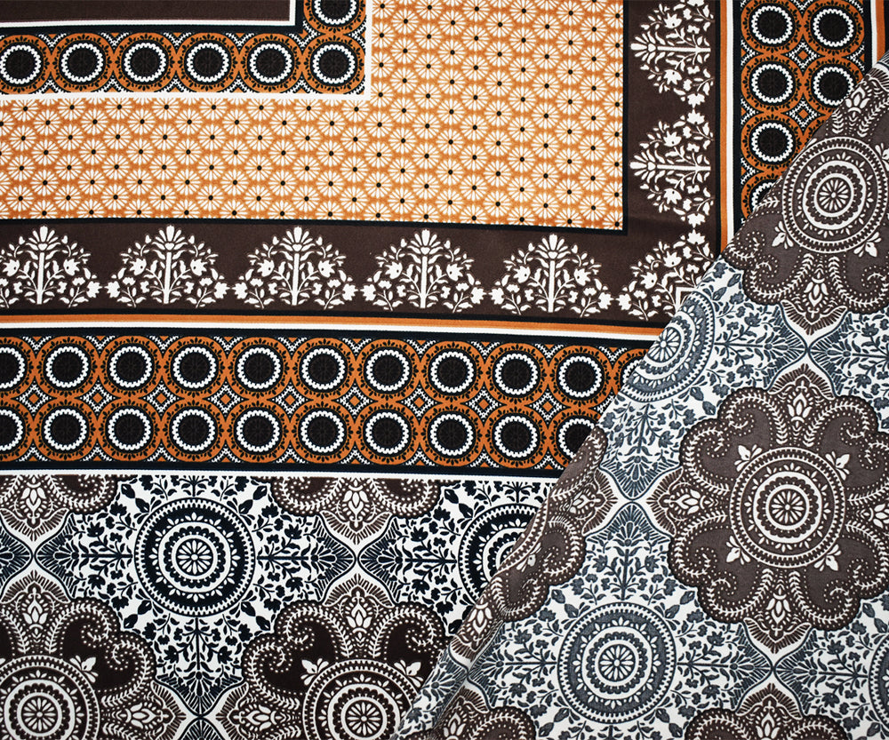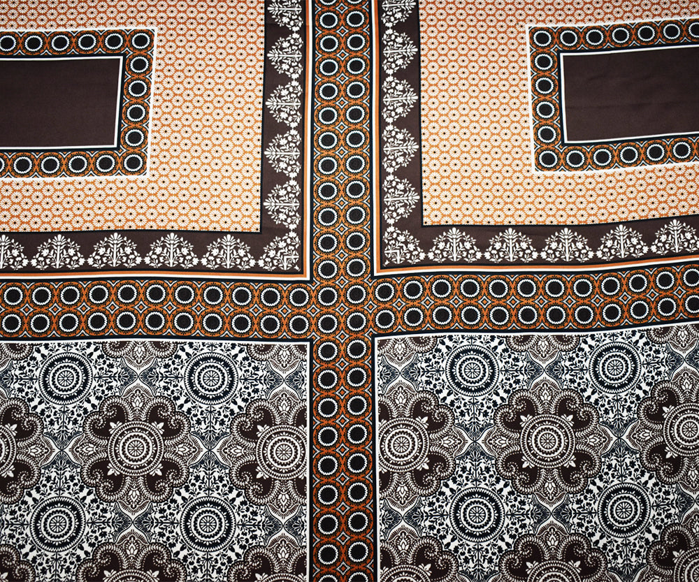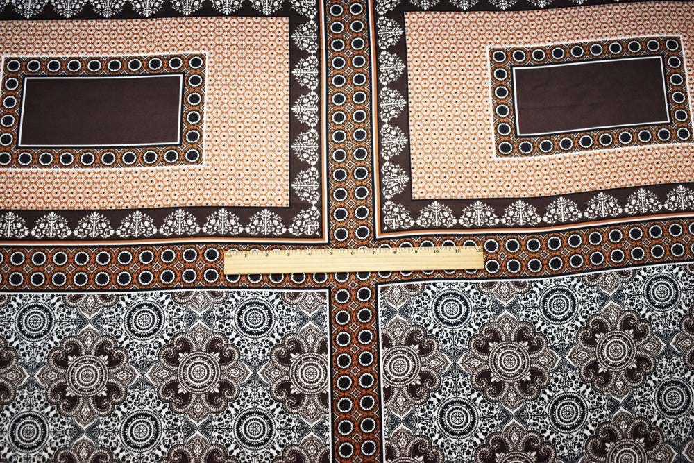 Brown-Multi Poly Bandana PANEL Medallion Printed Charmeuse Woven Fabric