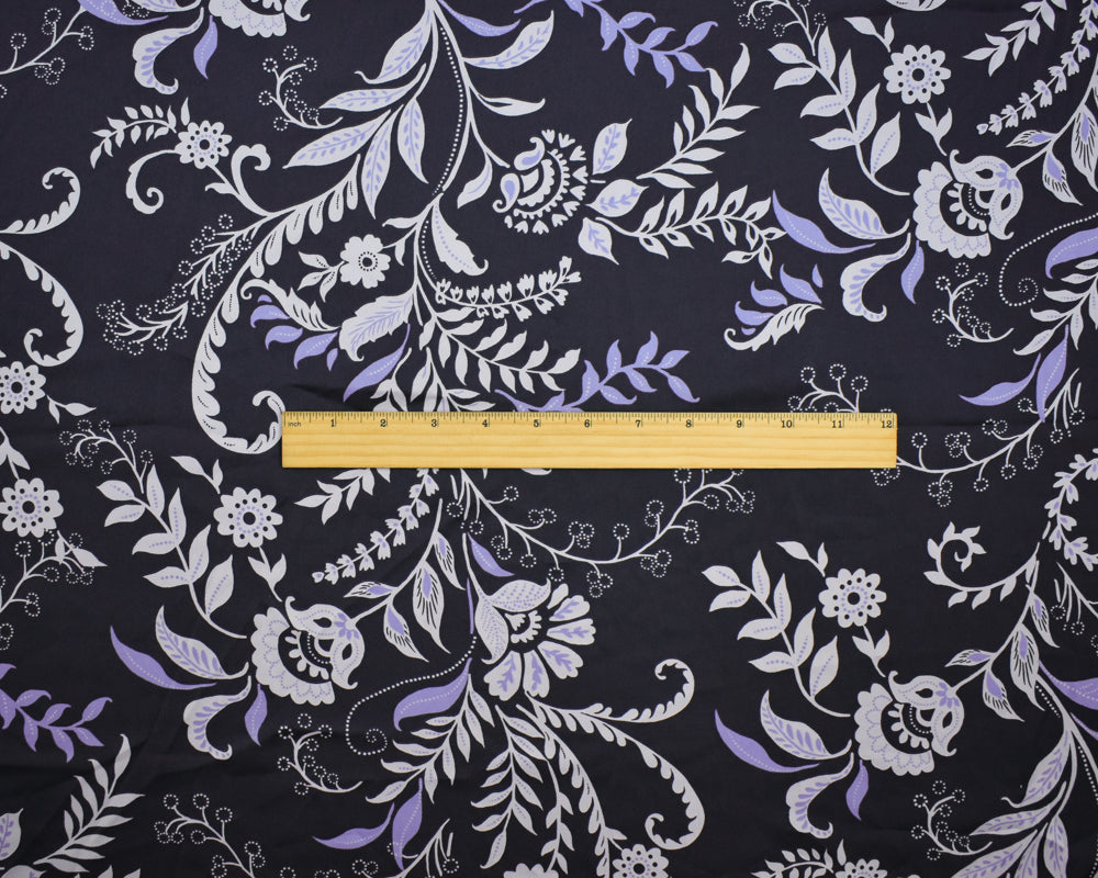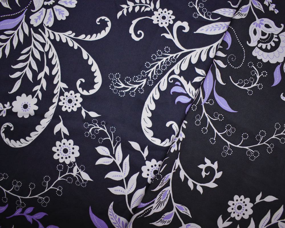 Deep Navy-Purple-Multi Polyester Floral Printed Charmeuse Woven Fabric