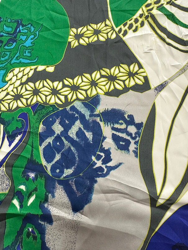 Green Multi Abstract Print Poly Charmeuse Satin Fabric