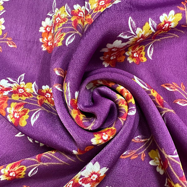Purple Floral Print Sueded Poly Charmeuse Fabric