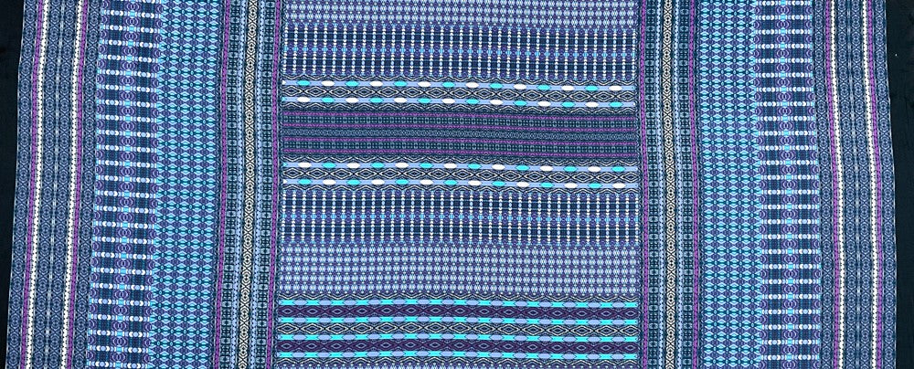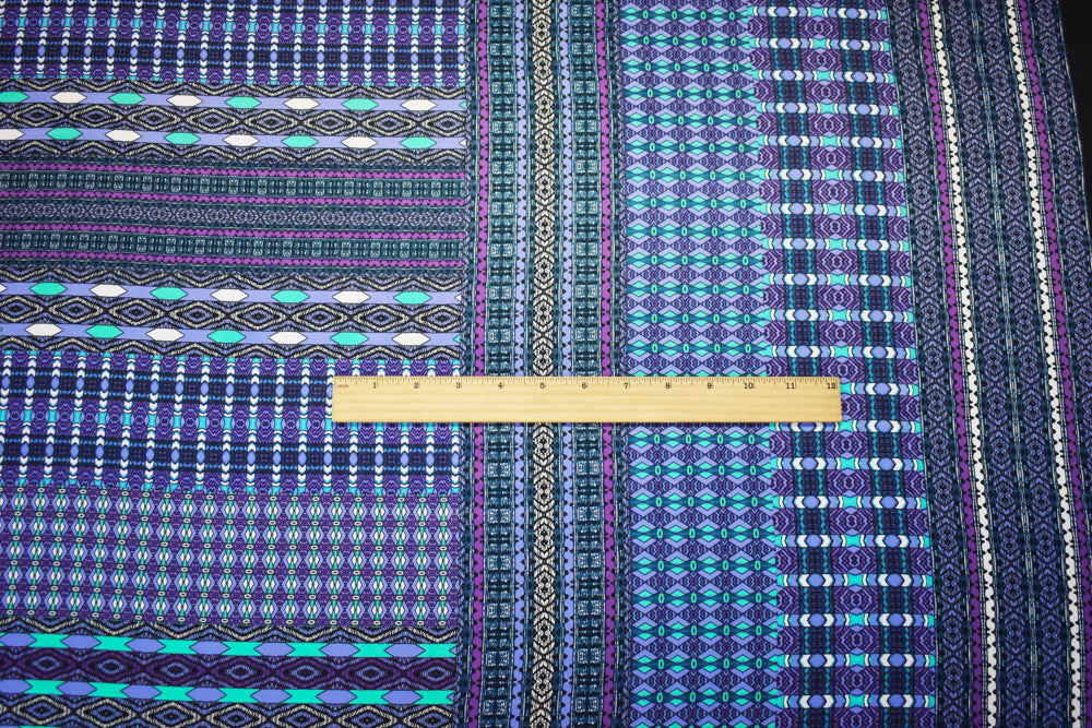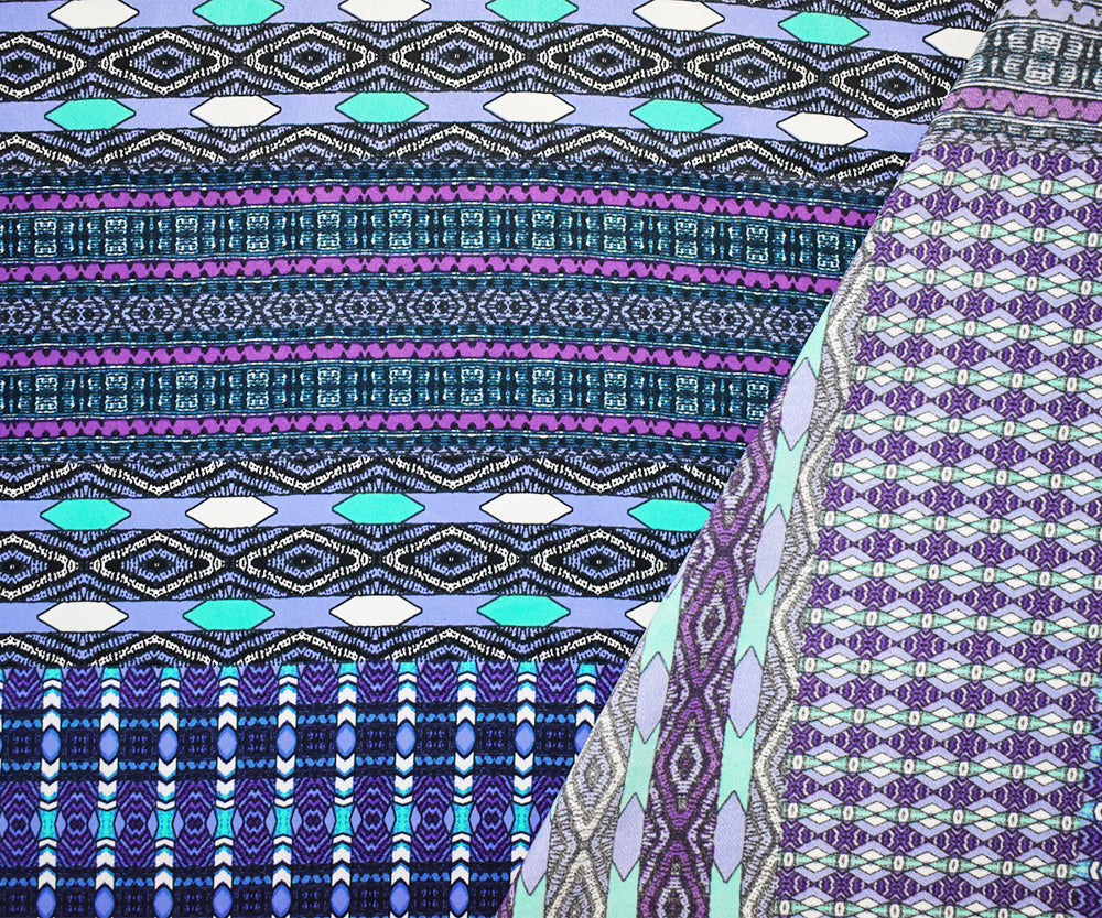 -Purple-Inidigo-Multi Poly Aztec Border Printed Charmeuse Woven Fabric