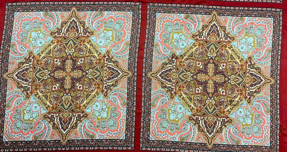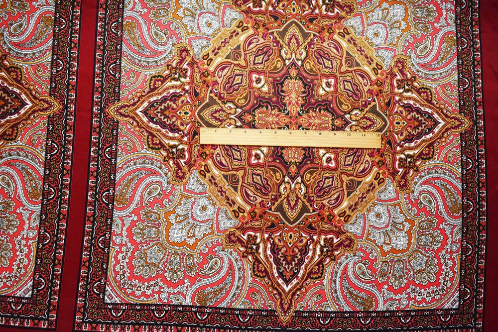 Red-Orange-Multi Polyester Paisley Bandana PANEL Printed Charmeuse Woven Fabric