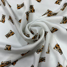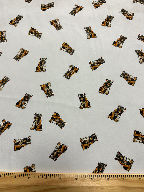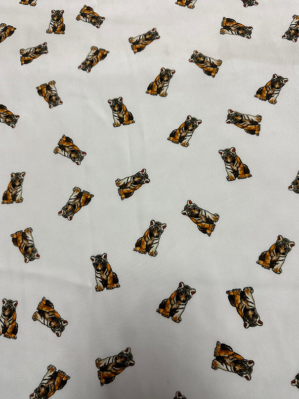 -Black, White, Orange, & Brown Tiger Print on White Charmeuse Satin Fabric