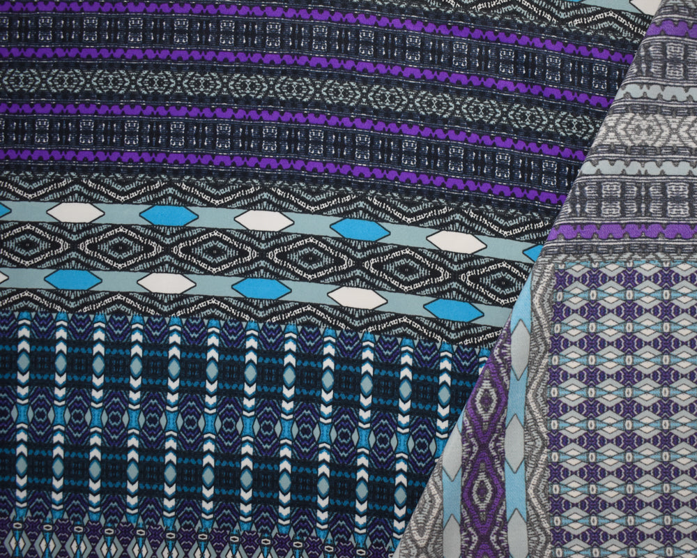 -Turquoise-Purple-Multi Poly Aztec Border Printed Charmeuse Woven Fabric
