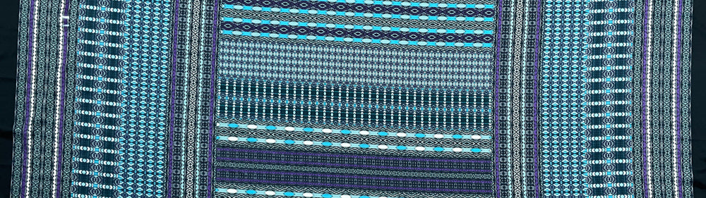 Turquoise-Purple-Multi Poly Aztec Border Printed Charmeuse Woven Fabric