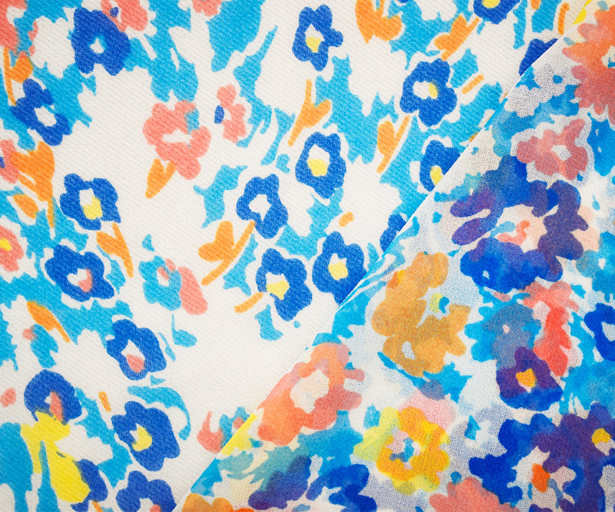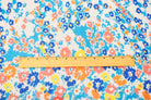 Aqua Blue-Orange-Multi Poly Floral Printed Chiffon Woven Fabric