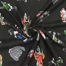 Basic Black-White-Multi Fashion Cartoon Printed Chiffon Woven Fabric