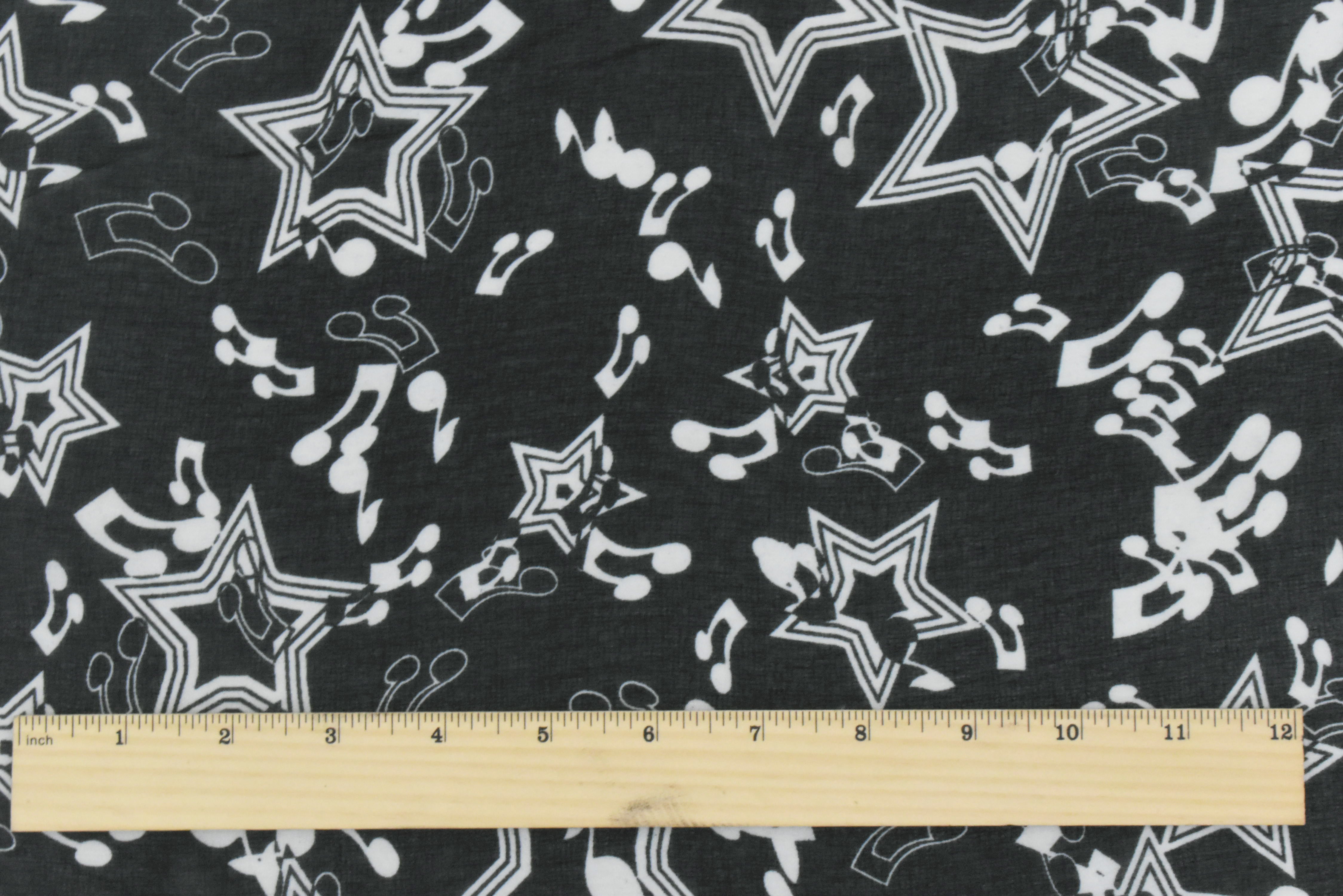 Basic Black-White Star Music Printed Poly Chiffon Woven Fabric
