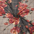 Beige-Red-Multi Poly Plaid Floral Printed Chiffon Woven Fabric
