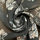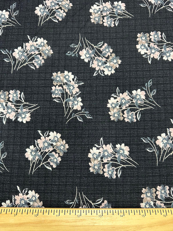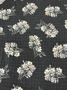 Black Floral Print Ripstop Look Poly Chiffon Fabric