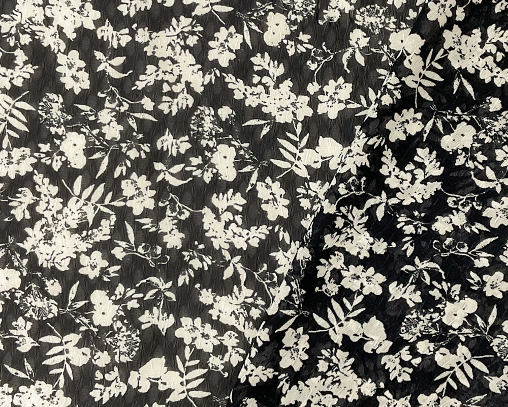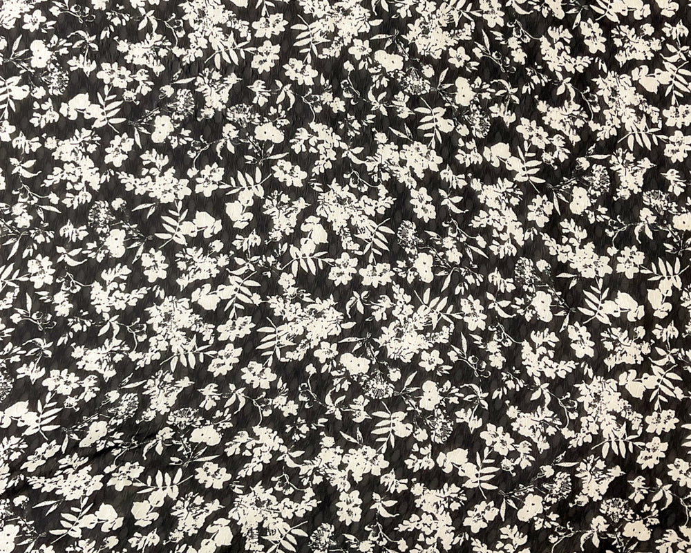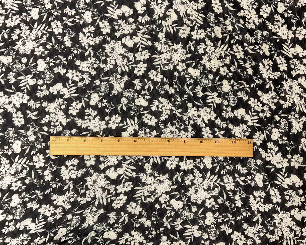 -Black-Ivory Poly Floral Printed Ogee Dobby Chiffon Woven Fabric