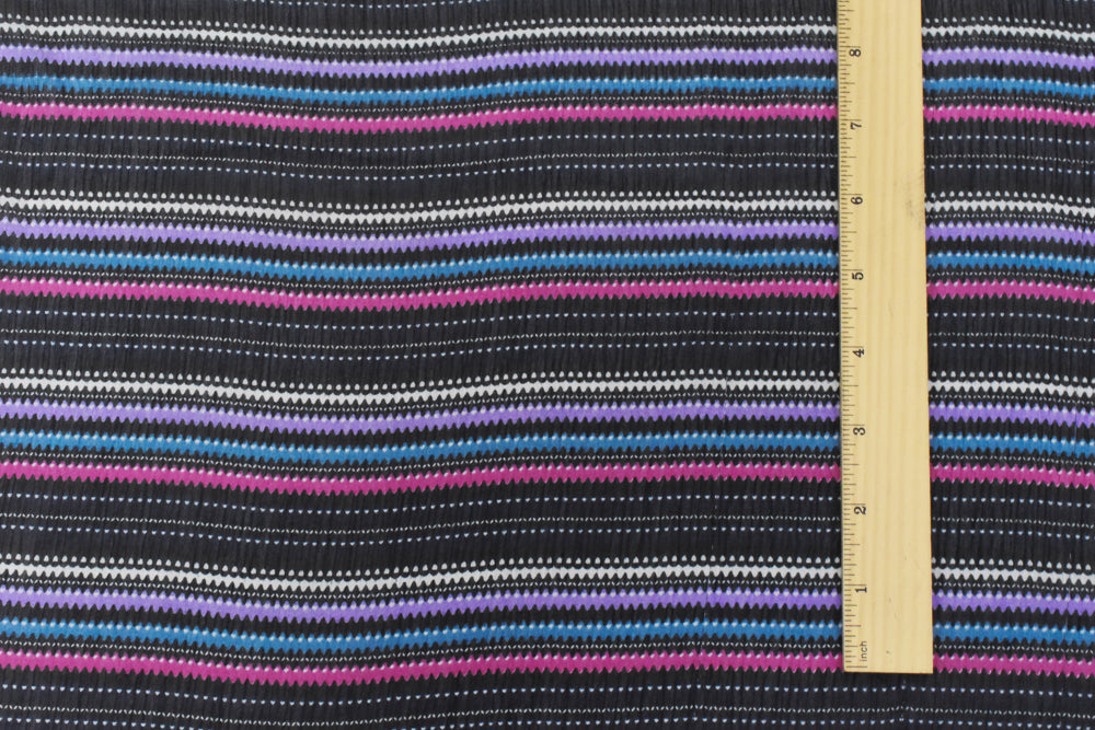 Black-Pink-Multi Mini Wave Stripe Printed Poly Crinkle Yoryu Chiffon Fabric