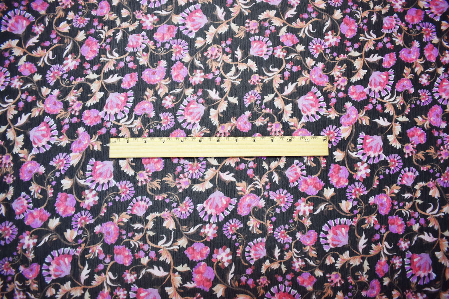 -Black-Pink-Multi Poly Floral Printed Crinkle Yoryu Chiffon Woven Fabric
