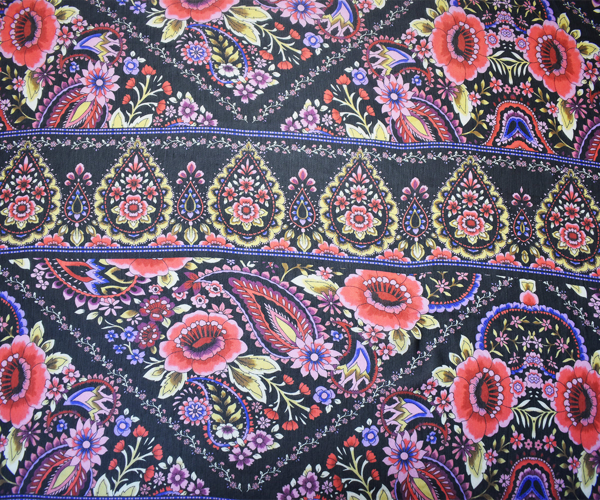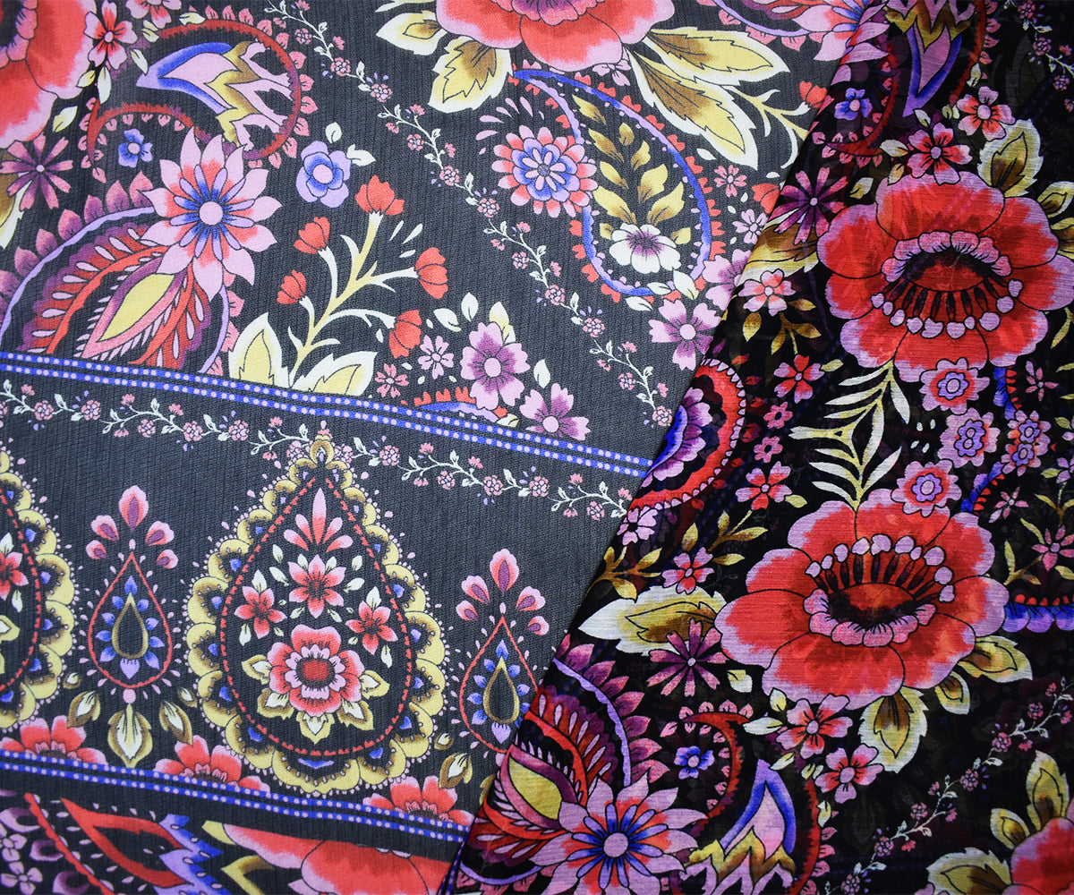 -Black-Pink-Multi Poly Floral Printed Crinkle Yoryu Chiffon Woven Fabric