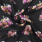Black-Purple-Multi Floral Printed Poly Grid Slub Chiffon Woven Fabric