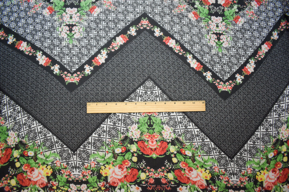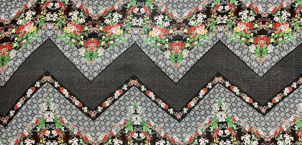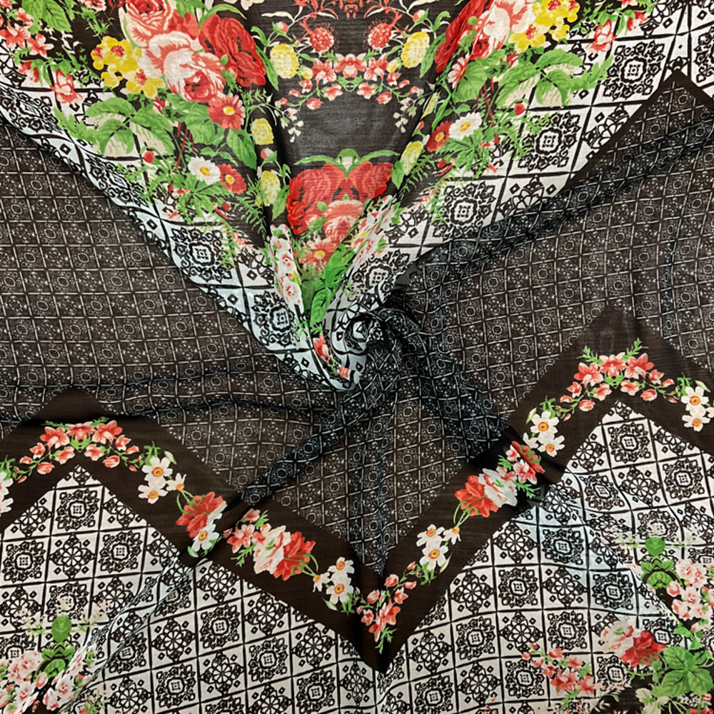 Black-Red-Multi Poly Floral Wave Printed Chiffon Woven Fabric