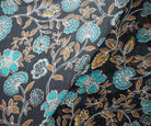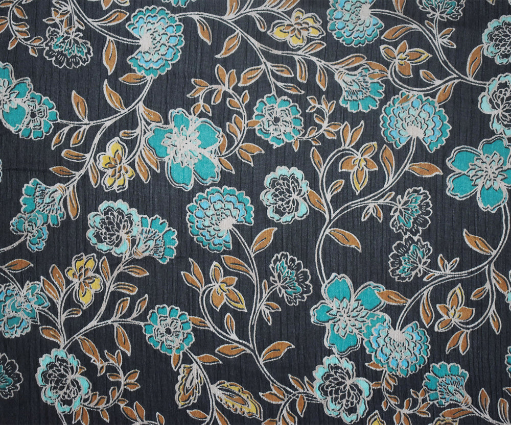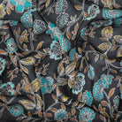 Black-Turquoise-Multi Floral Printed Poly Yoryu Chiffon Woven Fabric