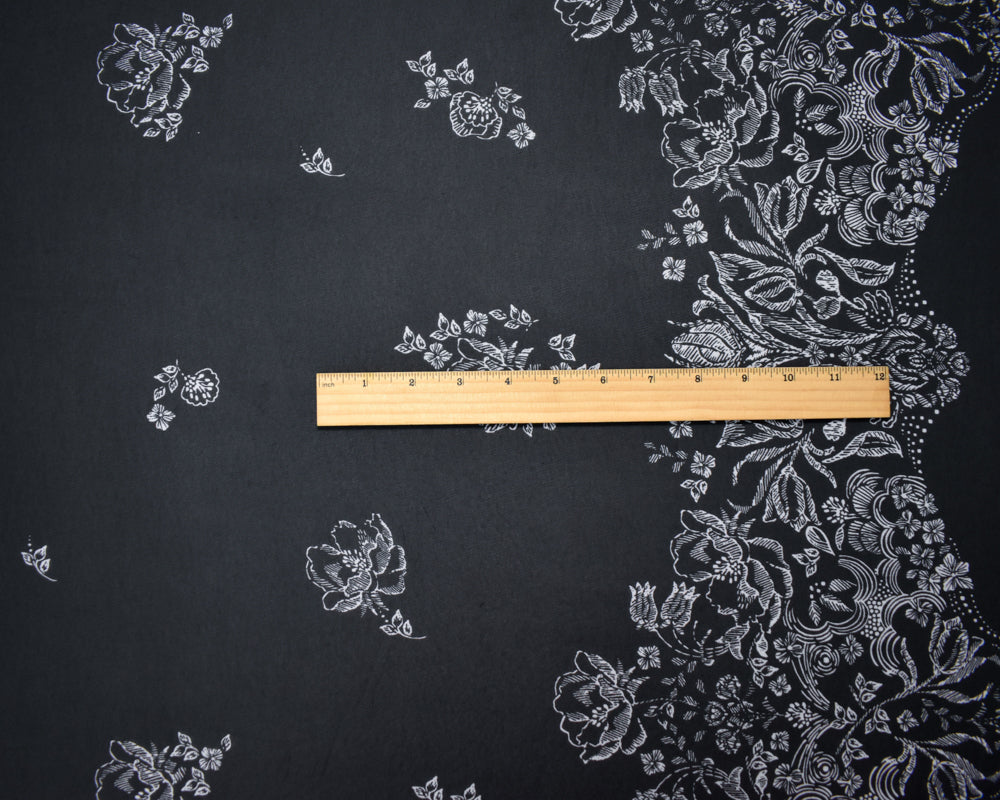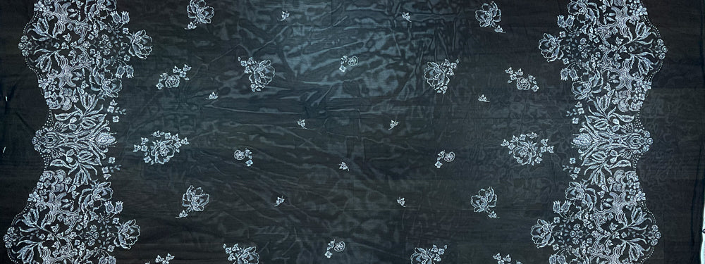 Black-White Poly Floral Border Printed Chiffon Woven Fabric