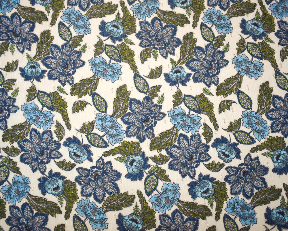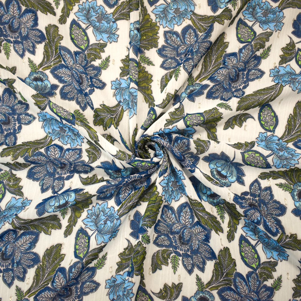 -Blue-Gold-Multi Floral Printed Metallic Crinkle Yoryu Chiffon Woven Fabric
