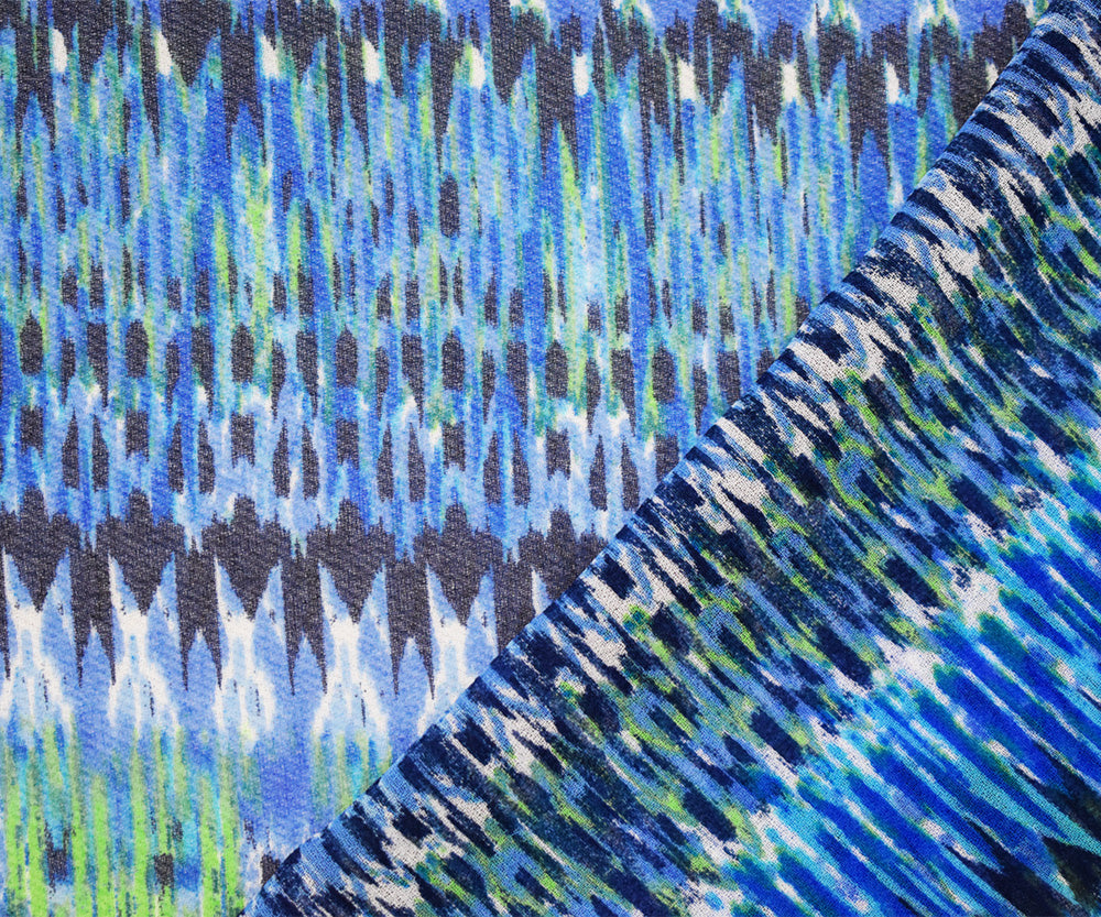 -100% Polyester chiffon woven fabric printed with an Aztec ikat-like inspired pattern