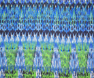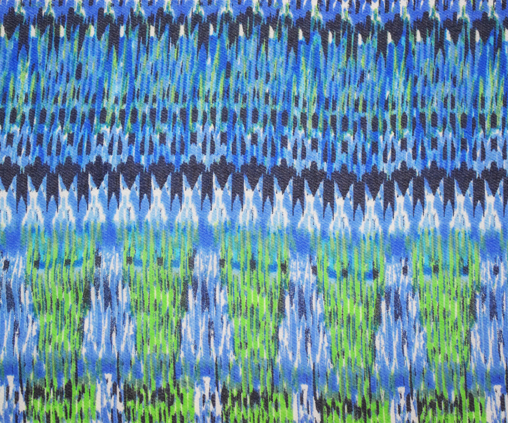 Blue-Green-Multi Polyester Aztec Ikat Printed Chiffon Woven Fabric