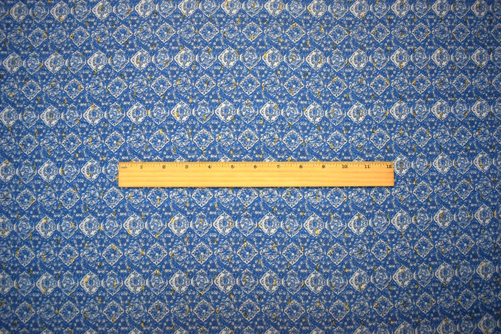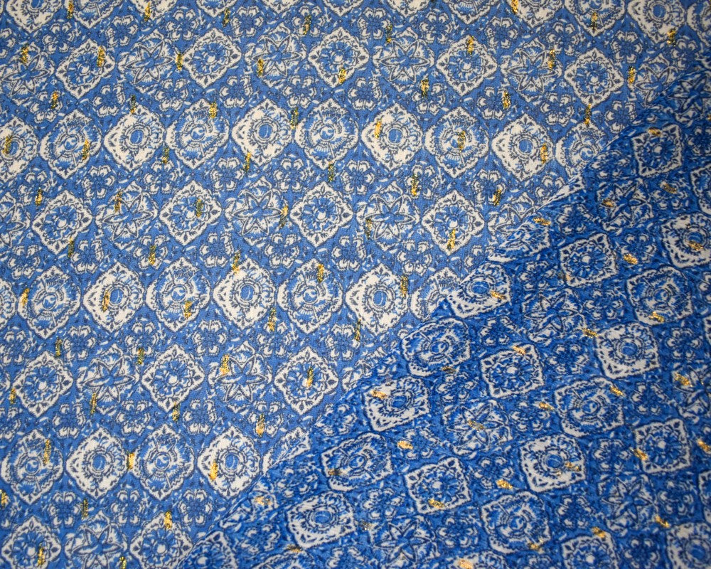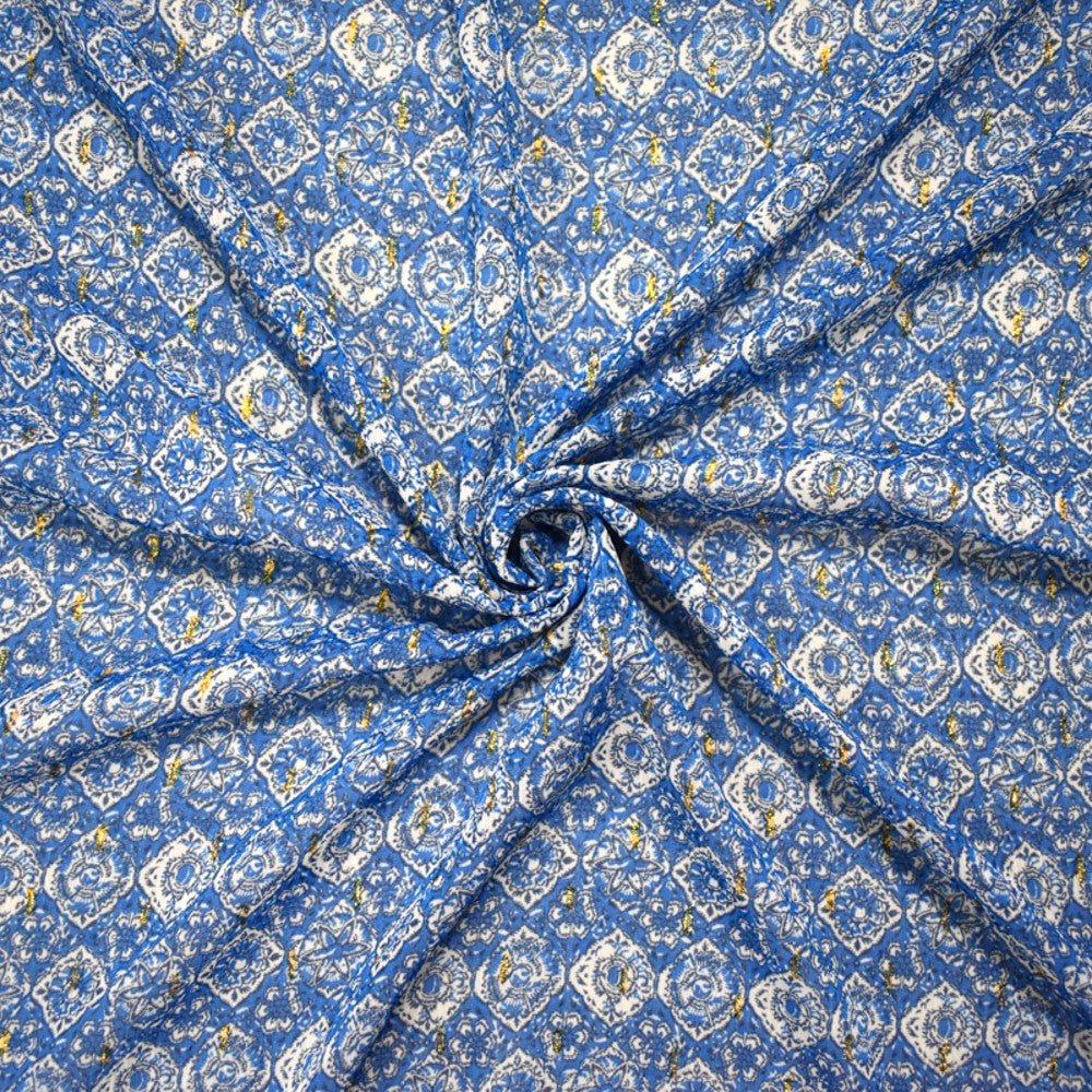 Blue-Multi Diamond Floral Printed Metallic Crinkle Yoryu Chiffon Woven Fabric