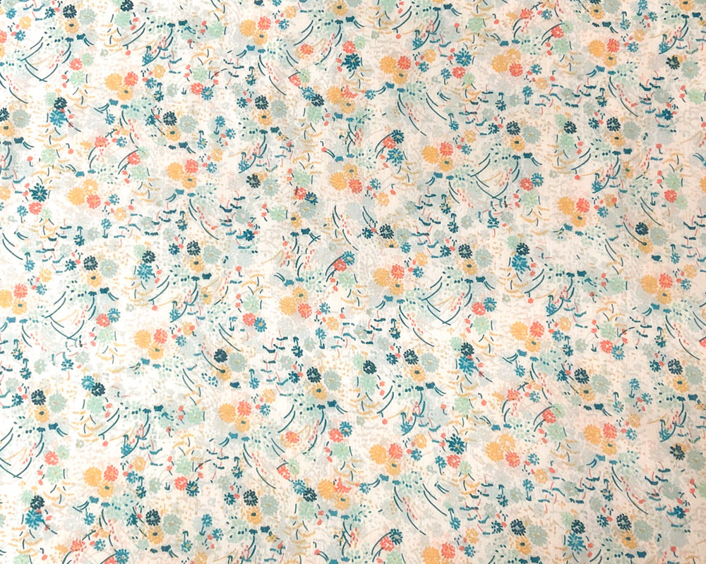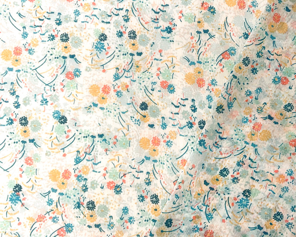 Blue-Multi Poly Floral Printed Crinkle Yoryu Chiffon Woven Fabric