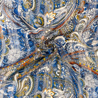 Blue-Multi Poly Paisley Printed Satin Stripe Chiffon Woven Fabric